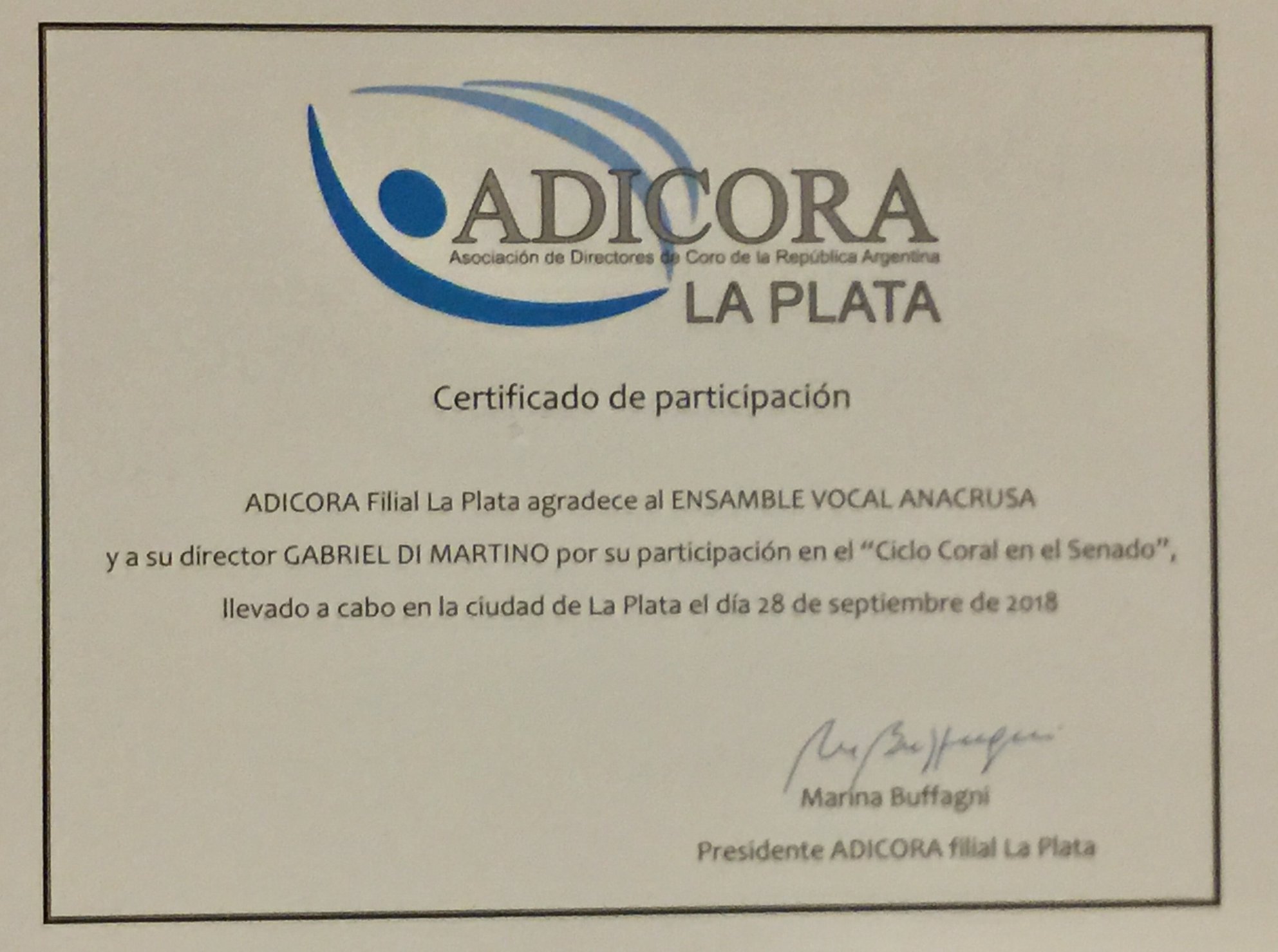 Presentación en el Ciclo Coral del Anexo del Senado Provincial en la Ciudad de La Plata.
