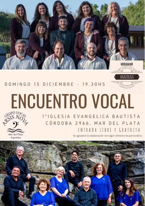 Concierto en conjunto con el prestigioso Vocal Arsis Nova de Mar del Plata dirigido por Mtra. Graciela Véspoli en la Iglesia Evangélica Bautista de Mar del Plata.